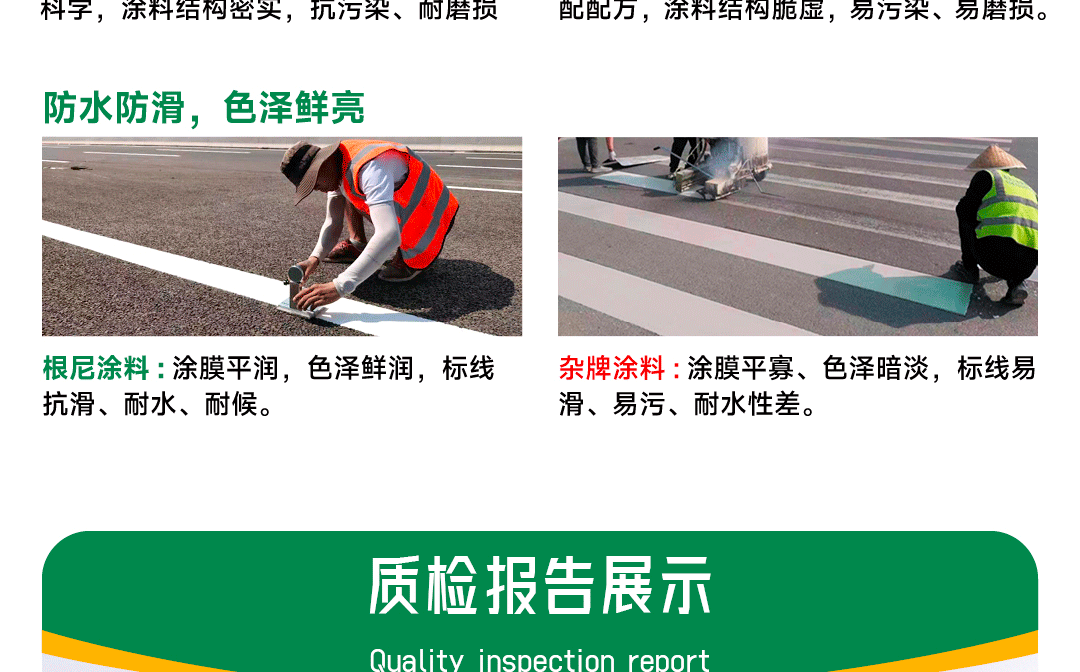 涂料特點(diǎn):結構合理、混合均勻、質(zhì)量一致性高 / 玻璃珠含量少 / 用途廣泛,使用方便。執行標準:符合JT/T280-2004主要標準;